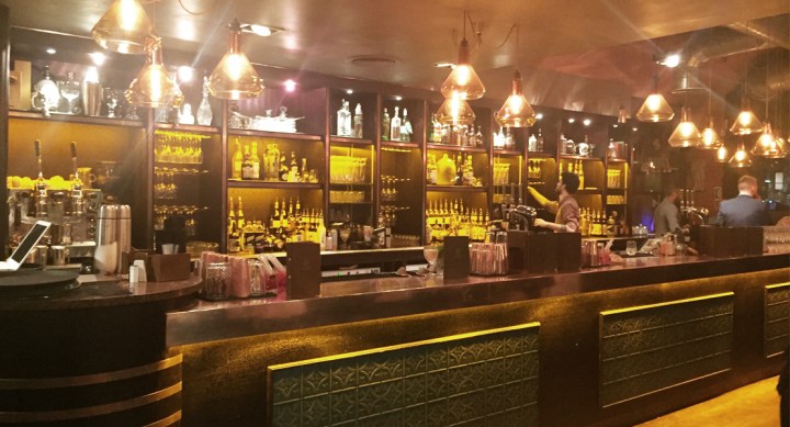 Now, we started with some fizz, which seemed a great way to start the evening. It did have some jelly-like balls, or beads if you will, in it; I found these both off-putting and intriguing. They added a little sweetness to the crisp drink, but I wasn’t sure about the texture at all. However, they kinda grew on me, in the sense that I still wanted the prosecco, so I soon finished my drink and headed towards the beautiful bar area.