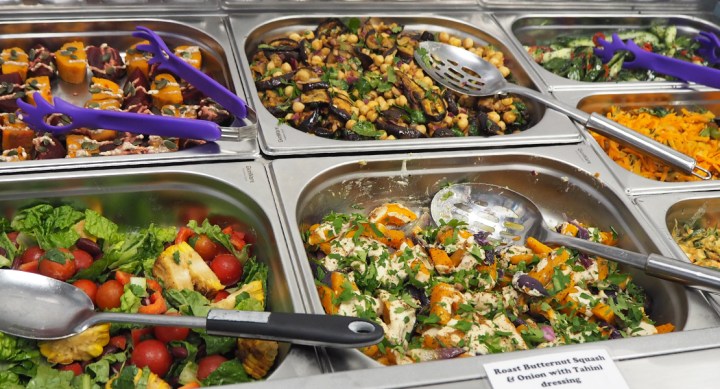 Now, if you’re in a rush, or like me, love a variety of options to fill you up at lunchtime; head towards the salad boxes. You can help yourself to a small (£2.50), regular (£4.25), or large (£5.75) container, then it’s fun to see just how much you can squeeze into them, or maybe that’s just me. I chose to have a regular container, before methodically scooping out small portions of each salad. I had slight food panic that I wouldn’t be able to try everything, but my skills came through that day and I successfully piled, I mean, elegantly filled my container with a bit of everything I wanted to try.